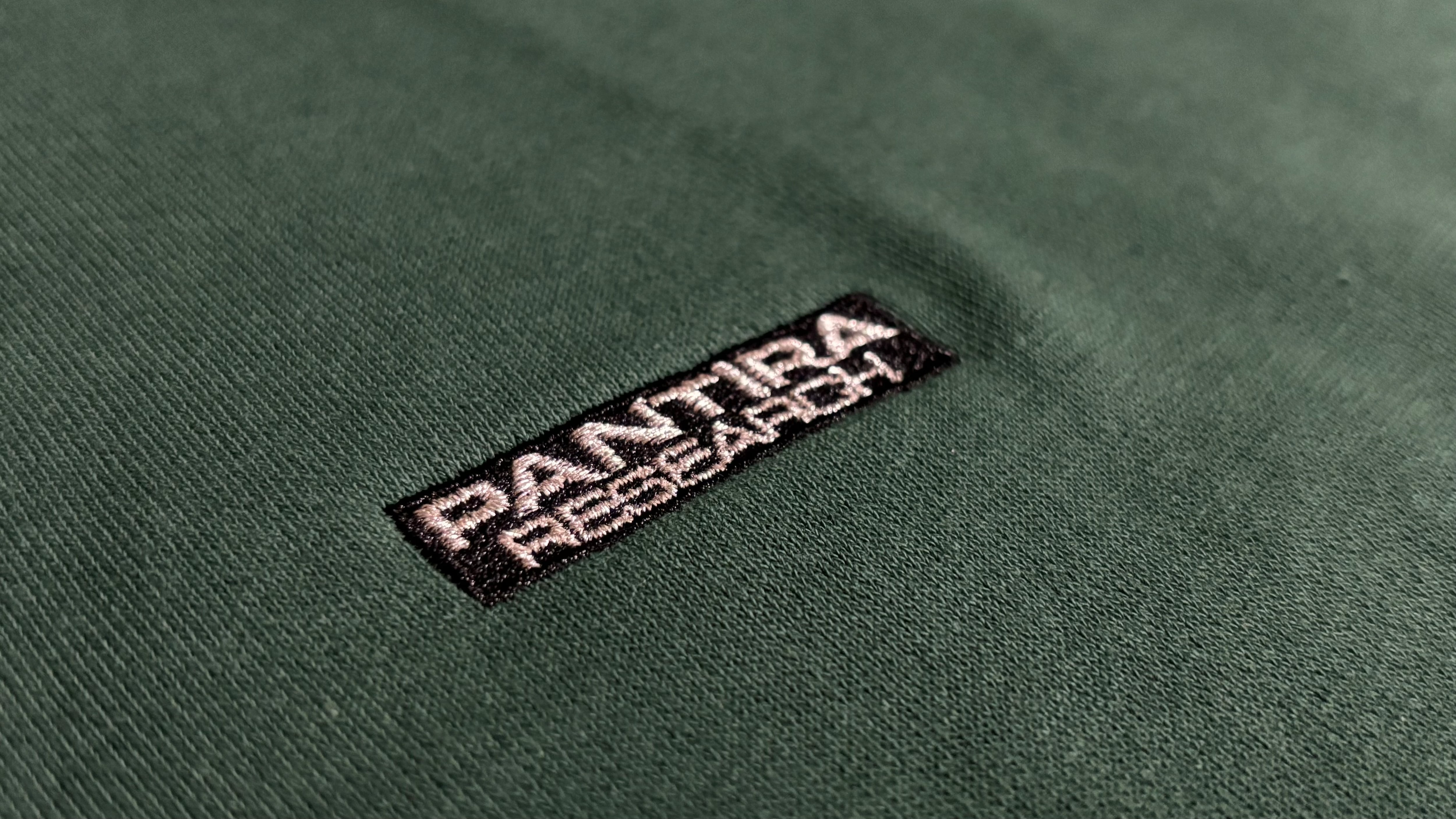 左胸にワンポイントで小さくpantiraresearchと黒バックに銀色で刺繍をいれました。